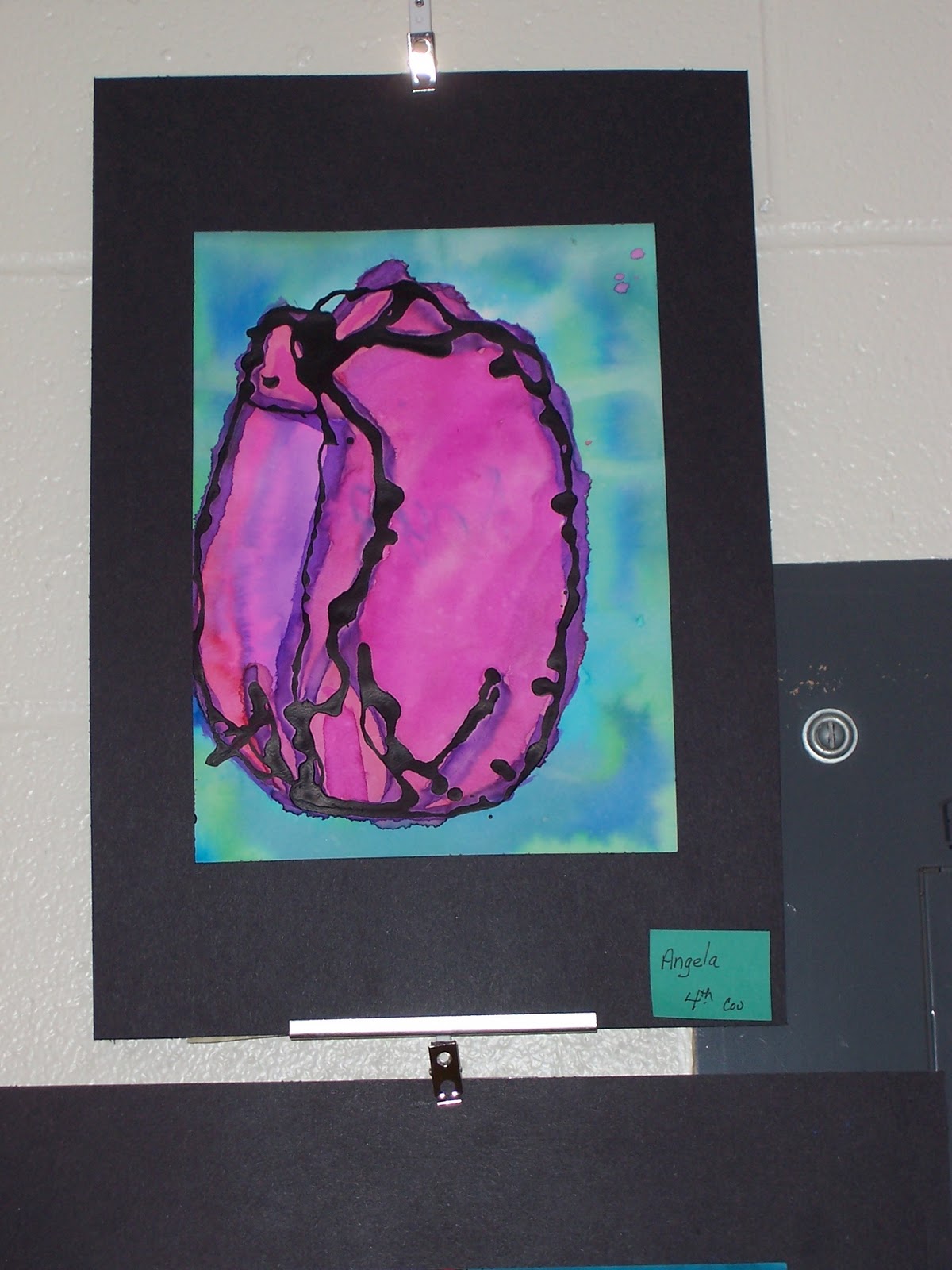 Here are a few of the art projects from Worthington Estates Elementary School. The Art school year began at WES with a school wide lesson on Vincent Van Gogh and Sunflowers. The school building is blossoming with sunflowers. They will be coming down soon.